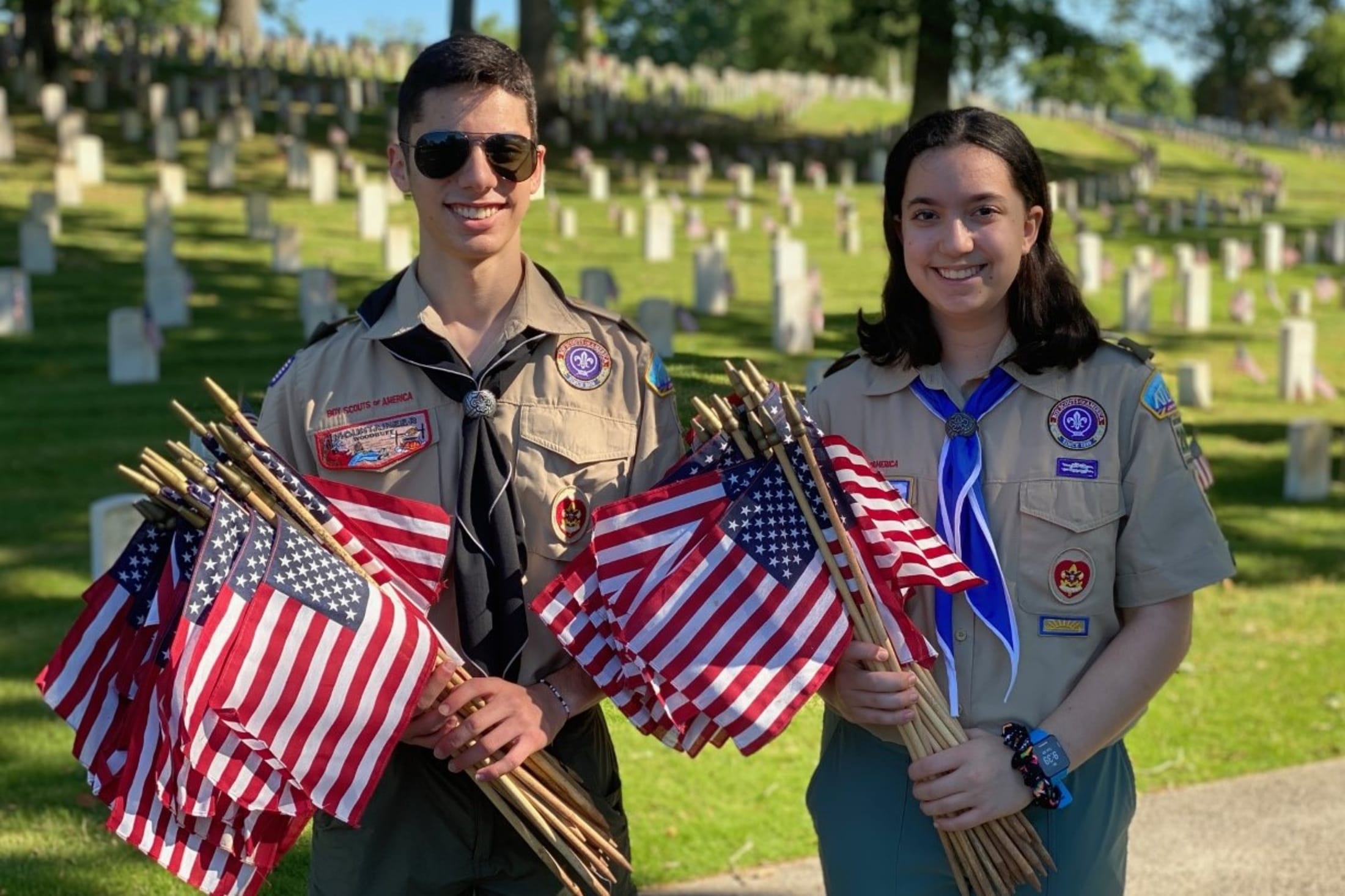 For Avi and Talia, Scouting has given them life skills and leadership opportunities, and the shared experience has brought the Fox family closer together. Whether it was helping toss bear bags over trees on family camping trips, videoing each other perform emergency preparedness situations in the living room during quarantine, or planting flags on their great-great-grandfather’s grave at the Marietta Cemetery’s Memorial Day Flag Ceremony, Scouting has allowed Avi, Talia, and their family to become an even stronger unit.
